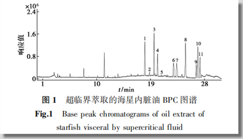 2.2??基于GC-MS的超臨界萃取海星內(nèi)臟油成分解析