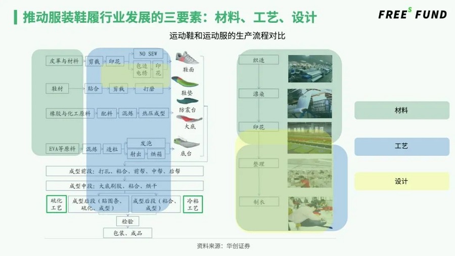 我們先來梳理鞋服行業(yè)的生產(chǎn)供應鏈條,從而理解材料這一環(huán)對于整個鞋服行業(yè)的意義。
